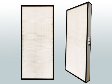 高效無隔板過濾器主要用于捕集0。3um以下的顆?;覊m及各種懸浮物,作為各種過濾系統(tǒng)的未端過濾。采用超細玻璃纖維紙作濾料,熱熔膠作分割板,新型聚氨酯密封膠密封,并以鍍鋅板、不銹鋼板、鋁合金型材為外框制成。
